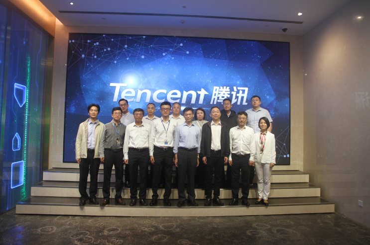 在考察腾讯公司期间,课题组与腾讯产业生态合作部总经理潘海等部门负责人进行座谈,认真观看演示,不时对腾讯数字赋能规划建设、转型升级、场景应用和数据安全等情况进行详细的了解。